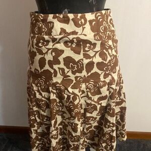 Boden Brown/Tan Linen Floral Swing skirt, size 10L (100% Linen, Lining 100% Linen)