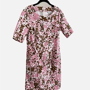 Boden Button Detail Shift Dress Pockets Zip Up Pink Brown Sze 6L
