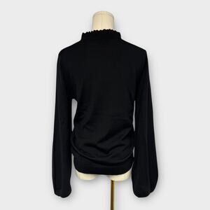 Boden Button Front Ruffle Merino Wool Jumper in Black Size US 6