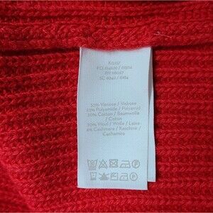 This womens size medium post box red long cardigan has a matching waist sash. Thick ribbed texture.