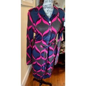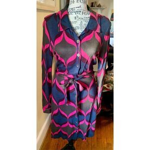 Boden Carnaby Retro Mod 60s print. Jersey material, button up front with matching belt. Size US 4.