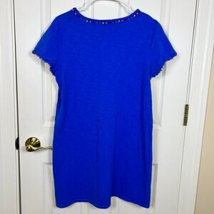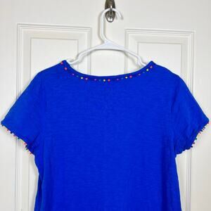 Boden Charlie Blue Multi Color Pom Pom Dress 12 Petite T-Shirt Colorful VGUC