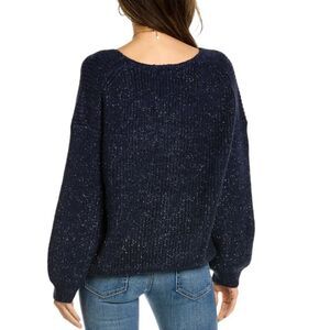 Boden Women's Chunky Fluffy V-Neck Wool & Alpaca Blend Metallic Sweater Navy Sz.2