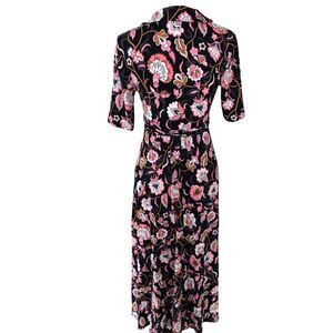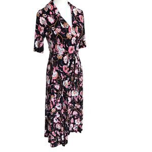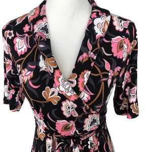 Boden Classic Short Sleeve Colorful Office Knit Jersey Floral Midi Wrap Dress 4P