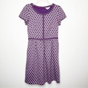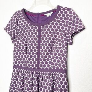 Classic sheath style fit and flare with a skater skirt. Lined. Back zipper. Jacquard purple dots. Pockets!