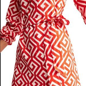 Turn heads in this vibrant Boden Cleo linen dress featuring a bold red and white geometric pattern. Crafted from 100% lightweight linen and designed with a defined tie waist, this dress balances effortless style with airy comfort—ideal for warm weather or layering into cooler seasons. In a size 8 Regular, it flatters with its slightly relaxed silhouette that cinches at the waist. Brand new condition—never worn and gorgeous enough to make summer feel electric.