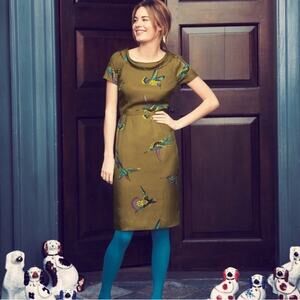 Boden Collared Silk Blend Hummingbird Midi Dress