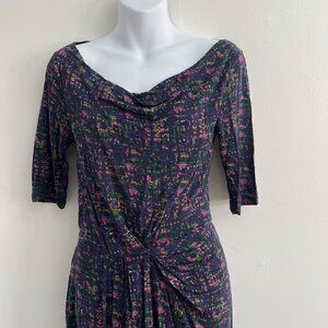 Boden Color Splash Swoop Neck Ruched Front A-line Dress Women's Size US 4R