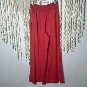 Boden Coral Linen Wide Leg Shirred Waist Pull on Pant Size 8Long