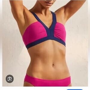 Boden Corsica V-neck Bikini Top Fuchsia Navy sz 14