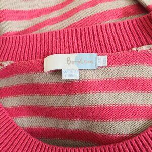 Boden Cotton Cashmere Angora Rabbit Hair Blend Stripe Sweater Pink/Tan Size US 8/UK12