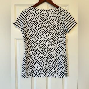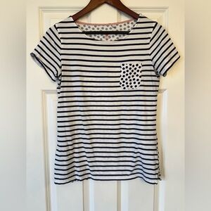Boden Cotton T Shirt White With Navy Stripe and Polka Dot Size 6
