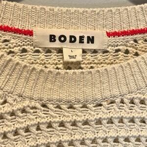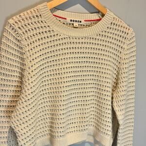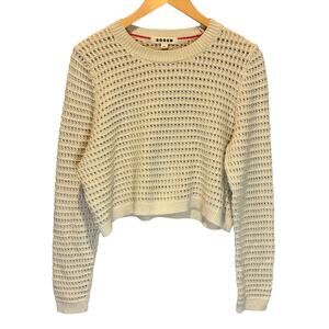 Stylish crew neck sweater. Intricate knit design. Perfect for layering.