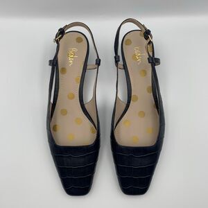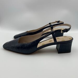 Boden Croc Embossed Leather Slingback Block Heel Shoes Navy Size 40 (US 9.5-10)
