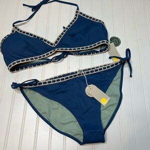 Boden Crochet Trim Two Piece Halter Bikini Swimsuit Swim Top Bottom 16 18 NEW