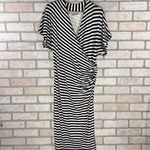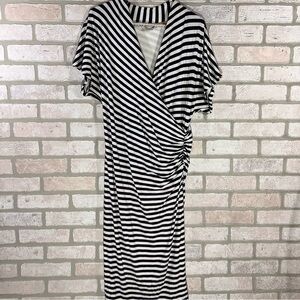 Boden Crossover Ruched Nautical Striped Midi Dress Size 8L