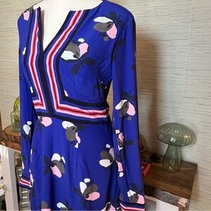 Boden Daisy Dress Long Sleeve Blue Floral Pink Size 4L Long Tall Fit & Flare