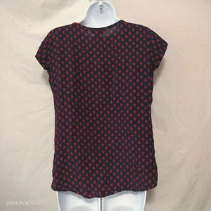 Boden Dark Blue Maroon Business Casual Button Pleated front blouse Top