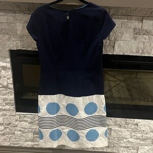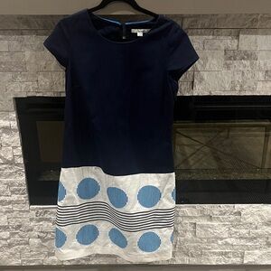 Boden Dark Blue Sheath Dress with Polka dot hem accent size 8 L