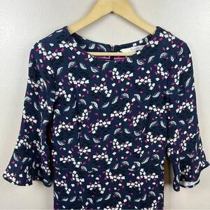 Boden Delia Dress Size 4 Floral Fluted Sleeves Work Office Career Blue Pink