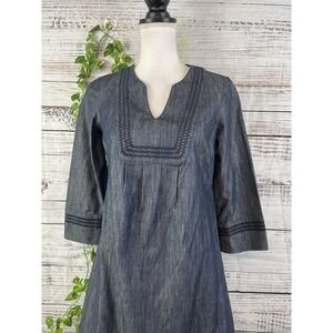 Boden Denim Jean Dress size 4 Embroidery A Line Above Knee Casual Boho Beach