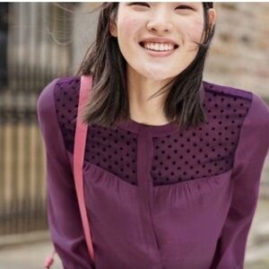 Boden Dotted Courtney Blouse Button Up Purple Size 6