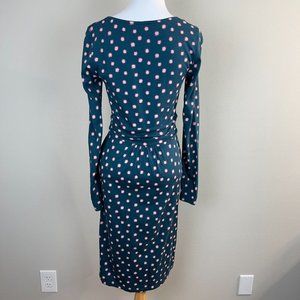 Boden Dress 4 Long Mabel Jersey Star Burst Teal Pink Long Sleeve Ruched Waist 4L