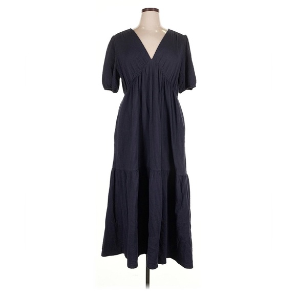 Short sleeve, v-neck, popover, navy blue, midi-calf length