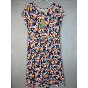 Boden Dress Amelia Jersey 12 R Floral Multi Drape Knee Length Stretch Fun Preppy