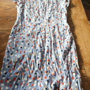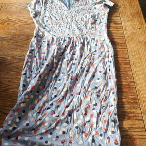 Boden Dress Easy Notch Neck Jersey in Blue Emory Floral Polka Dot Stretch sz 12L