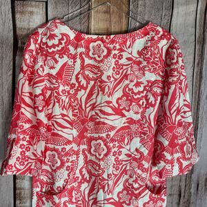 Boden Dress Laurie in Lollipop Exotic Escape 100% Linen Bird Floral US Size 6 R