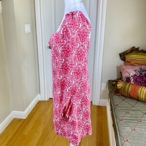 Boden Dress Linen Mini Long Puff Sleeve Sweetheart Neckline Cherry Red Print (6)
