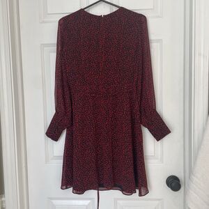 This stunning Boden dress features a beautiful poinsettia blossom leopard print in rich red and black. The dress is made of high-quality polyester and is machine washable. It has a scoop neckline, sheer long sleeves, and a zip closure in back. Body is fully lined. Would be great for holidays or parties.