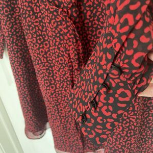 Boden Dress Poinsettia Blossom Leopard Print Size US 2P Red Black Sheer Lined