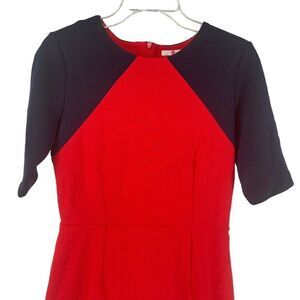 Boden Dress Women's US Size 4 Poppy Ottoman Colorblock Midi Red Navy Blue Textured Careerwear Classic Preppy Retro