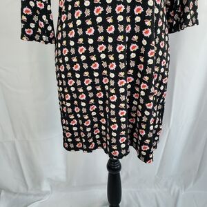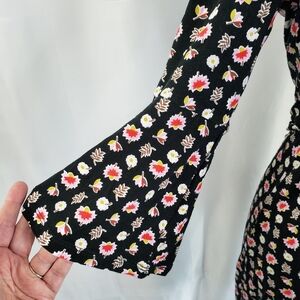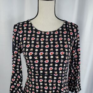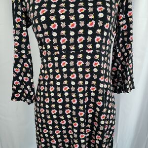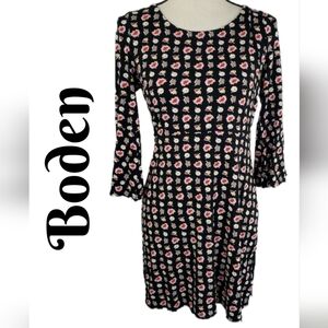 Boden Dress Sz 8 Black With Flowers Stretchy-Soft Fit-Flare Slight Bell Sleeves
