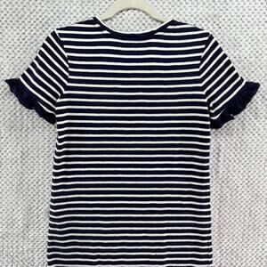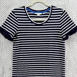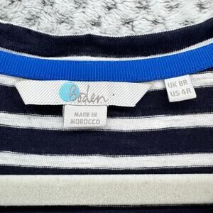 Boden Dress Women US4R Blue White Striped Emily Ruffle Jersey Stretch Crew Neck