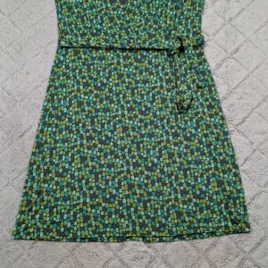 Gently Pre-Owned. Excellent condition. No flaws. Tie Waist. Scrunch/pleat detail around the waist. Knee Length. Short cap sleeves.