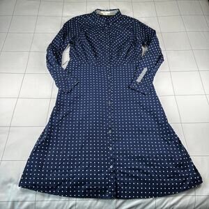 Boden Dress Womens 12 Long Navy Blue Polka Dot Fit Flare Posy Collared Preppy