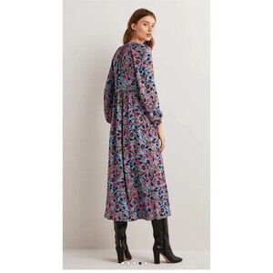 Boden Dress Womens 12R Maxi Tea Long Sleeve Floral Button Pockets Colorful Notch