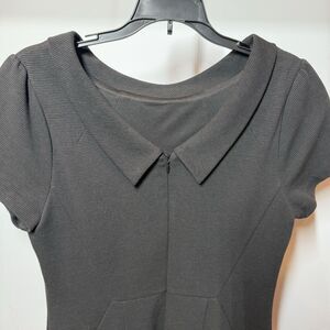 The Boden Dress is a stylish black sheath midi dress designed for a size 14 woman. Made from a blend of cotton, modal, and spandex, this dress features a flattering short cap sleeve with a round neckline and a slimming zip closure. Perfect for a party, casual outing, or business event, this classic and preppy dress is lined for added comfort and has a collared zipper accent. Ideal for summer, fall, and spring seasons, this Boden dress is a versatile and elegant choice for any occasion.