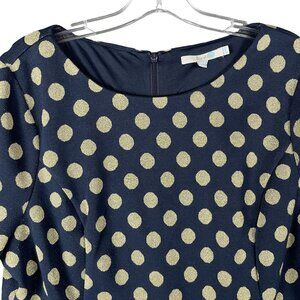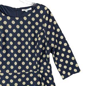 Boden Dress Womens 14 Blue Gold Polka Dot Formal Party Event Christmas Holiday