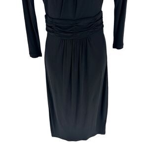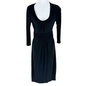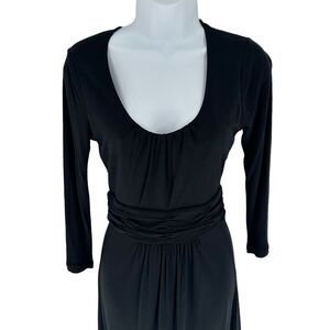 Boden Dress Womens 4L Long Black Midi 3/4 Sleeve Jersey Knit Soft Ruched Waist