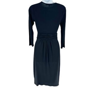 Boden Dress Womens 4 Long Black Midi 3/4 Sleeve Jersey Knit Soft Ruched Waist