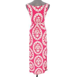 Boden Dress Women's 4 Pink White Floral Maxi Ruched Waist Stretch Knit Sleeveless Beach Resort