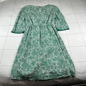 Boden Dress Womens 6 Green Dolly Day Paisley Faux Wrap Elastic Waist Classic