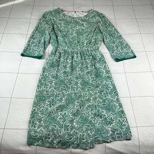 Boden Dress Womens 6 Green Dolly Day Paisley Faux Wrap Elastic Waist Classic