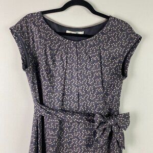 Boden Dress Womens 8 Polka Dot Tie Waist Short Cap Sleeve Viscose Silk