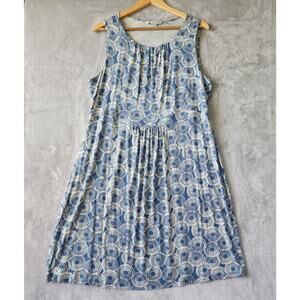 Boden Dress Womens Size 16 Blue Spiral Circle Pattern Pleated Stretch Knit 16R