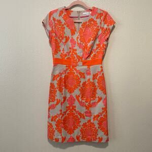 Boden Dress Womens Size 6 Tan Orange Mini Floral Sheath Retro Boho Preppy Garden